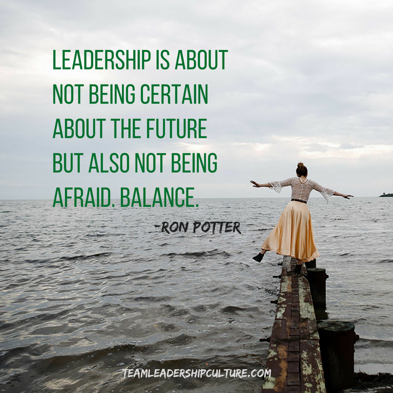 - Leadership is about not being certain about the future but also not being afraid. Balance.