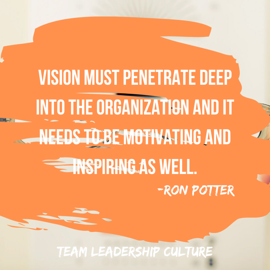 Vision must penetrate deep into the organization and it needs to be motivating and inspiring as well.