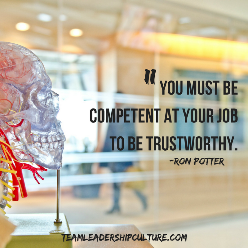 You must be competent at your job to be trustworthy. Steven Covey (7 Habits of Highly Effective People) talked of Trustworthiness requiring both character and competence. Competence tends to be correlated with the brains Executive function. Character and style, how you relate to people are much more complex and the results of the four other brains working well.