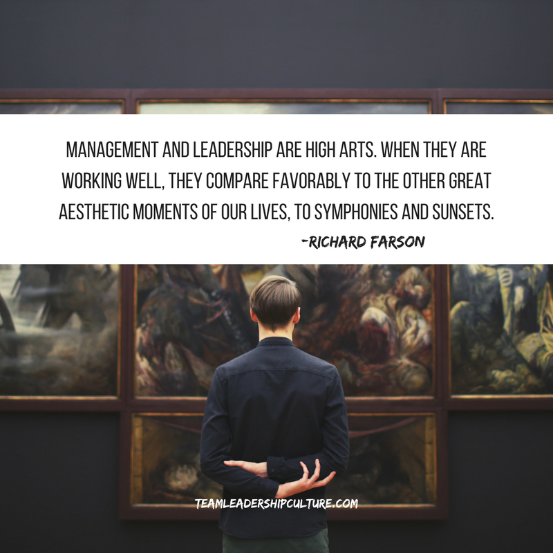 I’m afraid the lovers of the arts would never understand or agree that leadership would fall into the same category as a great symphony or painting, but I’ve experienced that kind of joy when great teams really get on a roll. “Management and leadership are high arts. When they are working well, they compare favorably to the other great aesthetic moments of our lives, to symphonies and sunsets.”